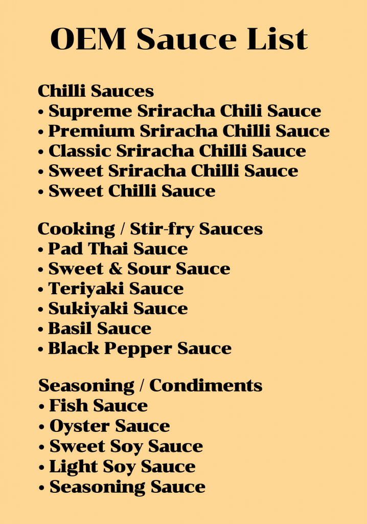 We are a specialized sauce manufacturer offering custom-made (OEM) private label production to meet your brand’s unique needs. With a daily production capacity of 40 tons, we ensure consistent quality and timely delivery to support your business growth.