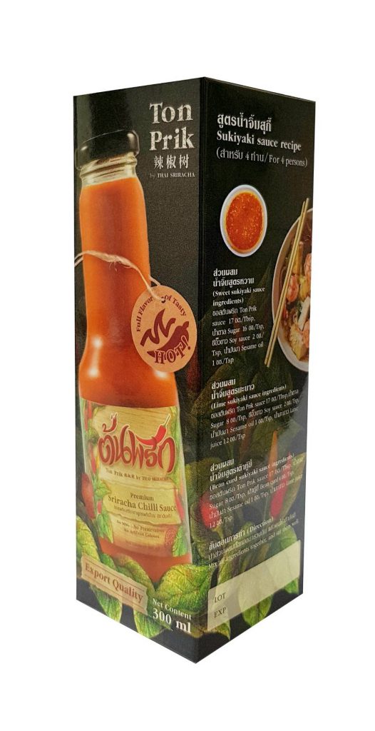 “Ton Prik Sauce” Premium Sriracha chilli sauce, is selected from finest ingredients such as red hot chilli and Thai garlic. Combined with the unique recipe, making “Ton Prik Sauce” has a mellow flavor that can be used as dipping and cooking sauce. That will make the food even more delicious. Ton Prik Sauce is well matched for Steak, Hot dog, Soups, Noodles, Tomyum, Pad Thai, Mee grob, or other favorite dishes.